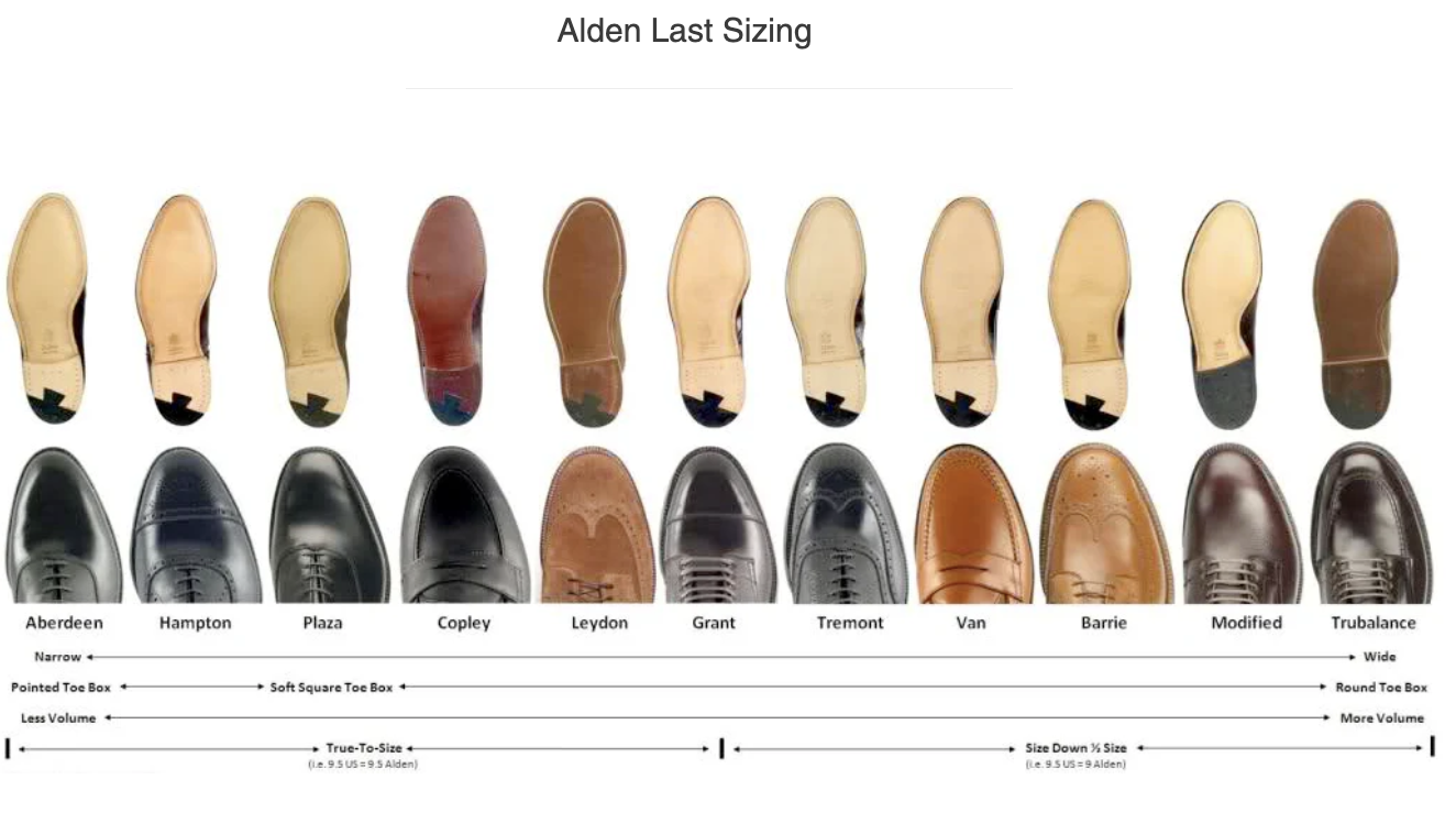 알든 구두의 사이즈 선택은 생각보다 복잡합니다. 알든은 총 13가지 라스트(신발의 목형)를 사용하며, 각 라스트마다 사이즈와 착용감이 상당히 다릅니다. 해외 구매를 많이 하기 때문에 교환도 쉽지 않죠.