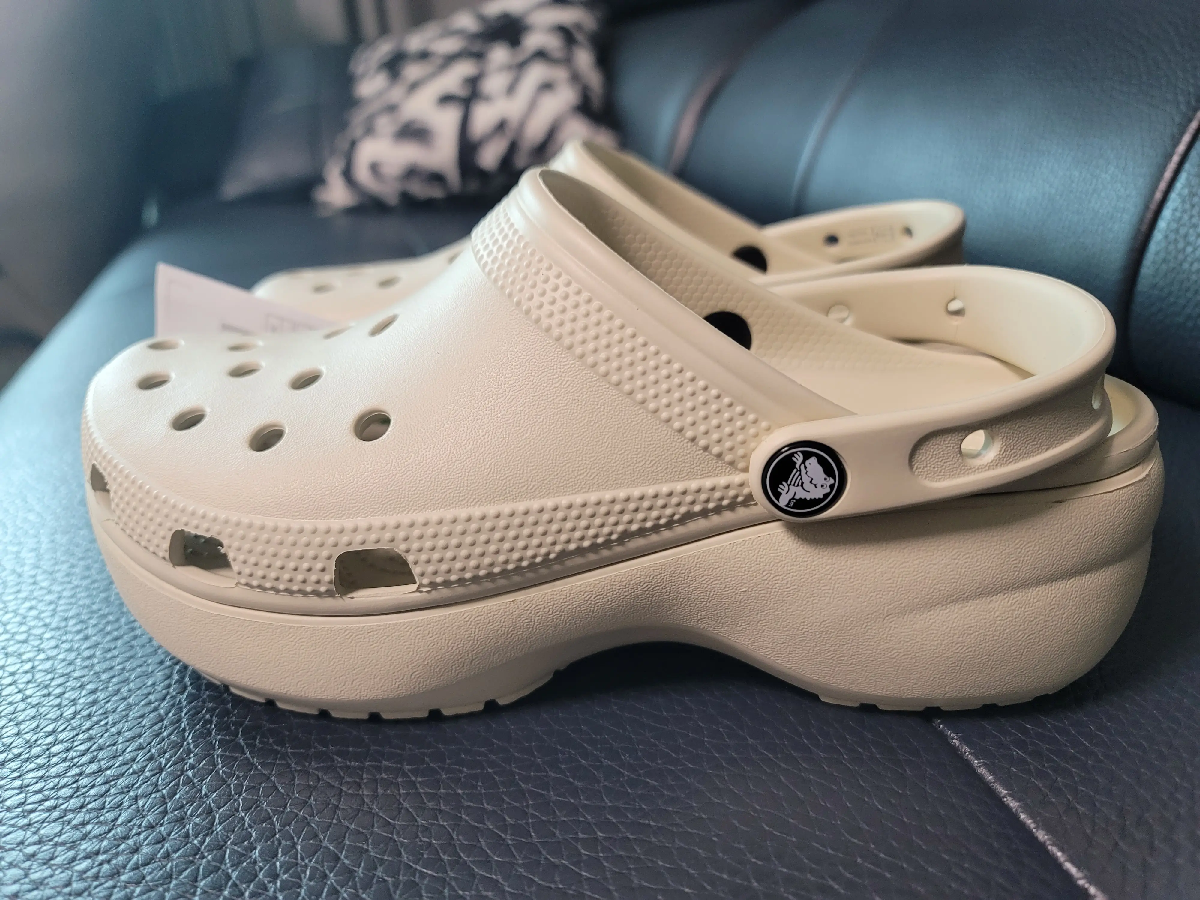 이번에 구입한 모델은 '크록스 클래식 플랫폼 클로그'로 일반 크록스보다 굽이 조금 더 있는 제품인데요. 색상은 '본 베이지'로, 하얀색이 아니라 은은한 빛이 나는 색상이죠.